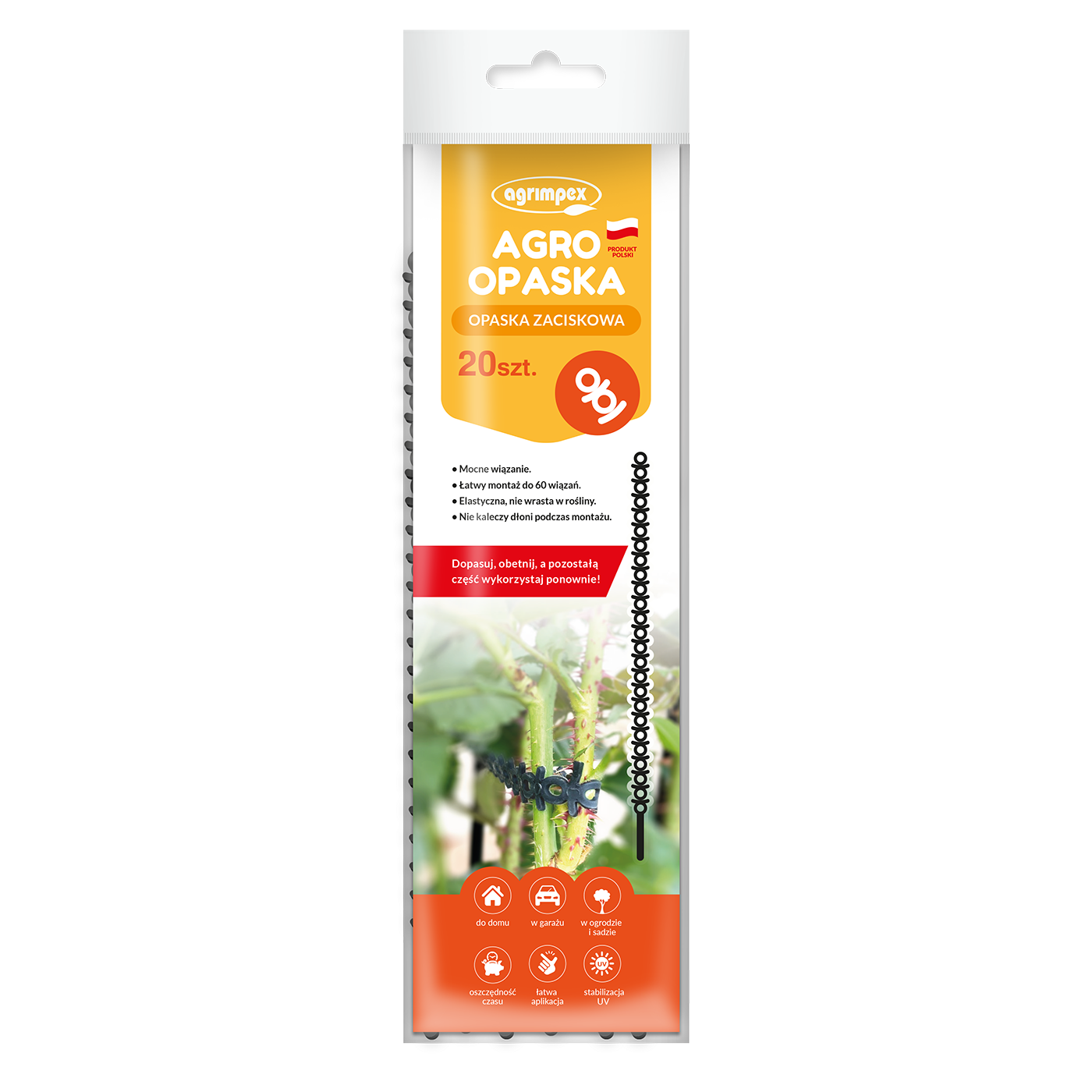 AGRO-OPASKA DO MOCOWANIA - Wielorazowe Mocowanie Roślin (20 sztuk)