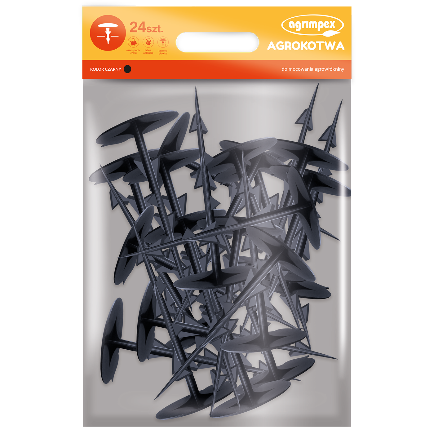 Agrokotwy czarne Agrimpex to praktyczne i trwałe rozwiązanie do stabilnego mocowania agrowłókniny czy agrotkaniny. Spiralny kształt zapewnia doskonałą przyczepność, uniemożliwiając ich wysunięcie, nawet przy silnym wietrze lub deszczu. Szeroka główka równomiernie dociska materiał, chroniąc go przed rozerwaniem.