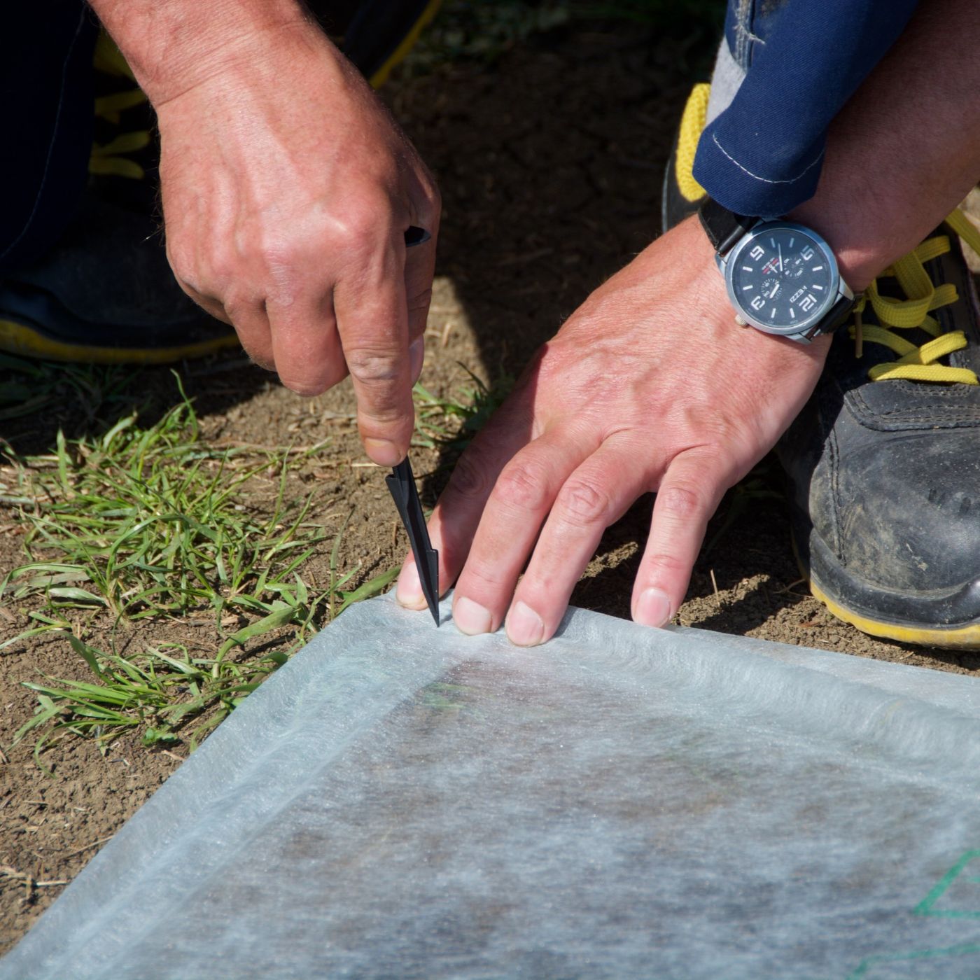 Mocowanie agrowłókniny i agrotkaniny.
